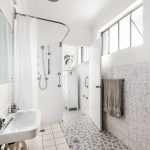 – 3 terrazzo-tiled bathrooms: main with bath & shower