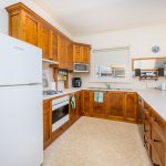 *Modernized kitchen with electric cooking, ample storage, and a practical design.