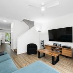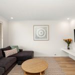 The dining and separate sitting space is found in the last room with timber framed windows stretching floor to ceiling across the rear wall, flooding the area with natural light. The toilet and laundry have their own space tucked off to the side.