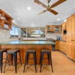 – Kitchen with gas cooktop, wall oven, dishwasher, dining bench