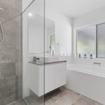 * The bathrooms all channel a fresh, seaside ambience, with the main offering a tub for end-of-day soaks plus a separate power room for functionality