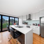 The sleek, contemporary kitchen is incorporated within the open-plan layout and comes fully equipped with top-of-the-line Smeg appliances. With a stone benchtop, ample bench space, and plenty of storage, this kitchen is both practical and beautiful, ideal for family meals or hosting guests.