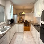Stylish kitchen with dishwasher and gas cooktop adjoining the dining area