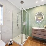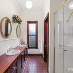 For rest and study, the home is cleverly configured. At the front, an office provides the ideal space for work or learning, alongside a luxurious master suite. This private retreat boasts a walk-in wardrobe and a chic floor-to-ceiling tiled ensuite with a shower, toilet, heated towel rail, vanity and a touch-lit mirror. The four remaining bedrooms, each with built-in wardrobes, are serviced by a bathroom styled to the same high standard as the ensuite, enhanced by the indulgence of a clawfoot bath. A separate powder room and wash area, complete with a touch-lit mirror, and a laundry with a bank of storage cupboards is placed alongside.