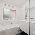 On the ground level of the home, an open plan living and meals area with accompanying electric fireplace, capitalises on natural light. Overlooking a well-appointed kitchen and walk in pantry, this functional space doesn’t compromise on style. Large glass doors provide a seamless transition outside, into a wonderfully equipped entertaining area with spa, outdoor kitchen with inbuilt BBQ, rangehood and outdoor heater, ensuring use all year round. A second living space and sizable laundry complete the ground level of the home.