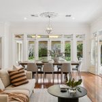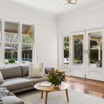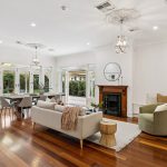 The lounge room also drinks in the morning sun; a soulful, spacious retreat with a fireplace, lofty decorative ceilings, polished pine floorboards and a subscription to those Netflix binge nights or quiet moments with a good book.