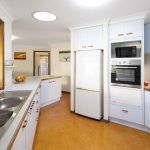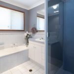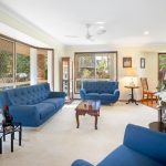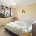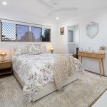 Main bedroom with ensuite, fan, mirrored built ins and plantation shutters.