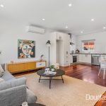 The home’s exceptional design extends beyond aesthetics, with double glazed windows enhancing thermal efficiency and sound insulation. Additional features include split system air conditioning/heating, a full-sized laundry, chic guest powder room, and a spacious lock-up garage with remote electric door and provision for electric car charging.