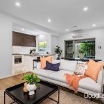 From the moment you step inside, you’ll be enchanted by the serene outlook onto a private courtyard, setting the stage for luxury living. The radiant living and dining area seamlessly flow into a spacious, impeccably designed kitchen boasting sleek stone benchtops, ample storage, and premium appliances including a 900mm gas cooktop and electric oven. Through double glazed sliding doors lies a sun-drenched rear yard, bordered by low-maintenance landscaped gardens-a secure oasis for outdoor family gatherings or quiet mornings with a cup of coffee in the sunshine.