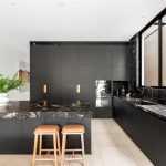– Modern kitchen with stainless steel appliances and Caesarstone countertops
