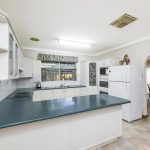 • Practical laundry with stainless steel trough, washer/dryer recess, overhead cupboard and built-in linen cupboard.