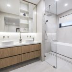 • Stylish bathroom, tiled from floor to ceiling, with vanity, shower, exhaust and separate W/C.